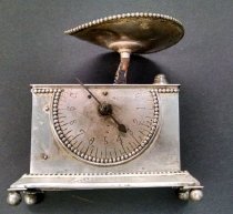 Sterling silver postage scale with beaded decoration by Wilcox Silver Plate Company used on Lydia's desk. |